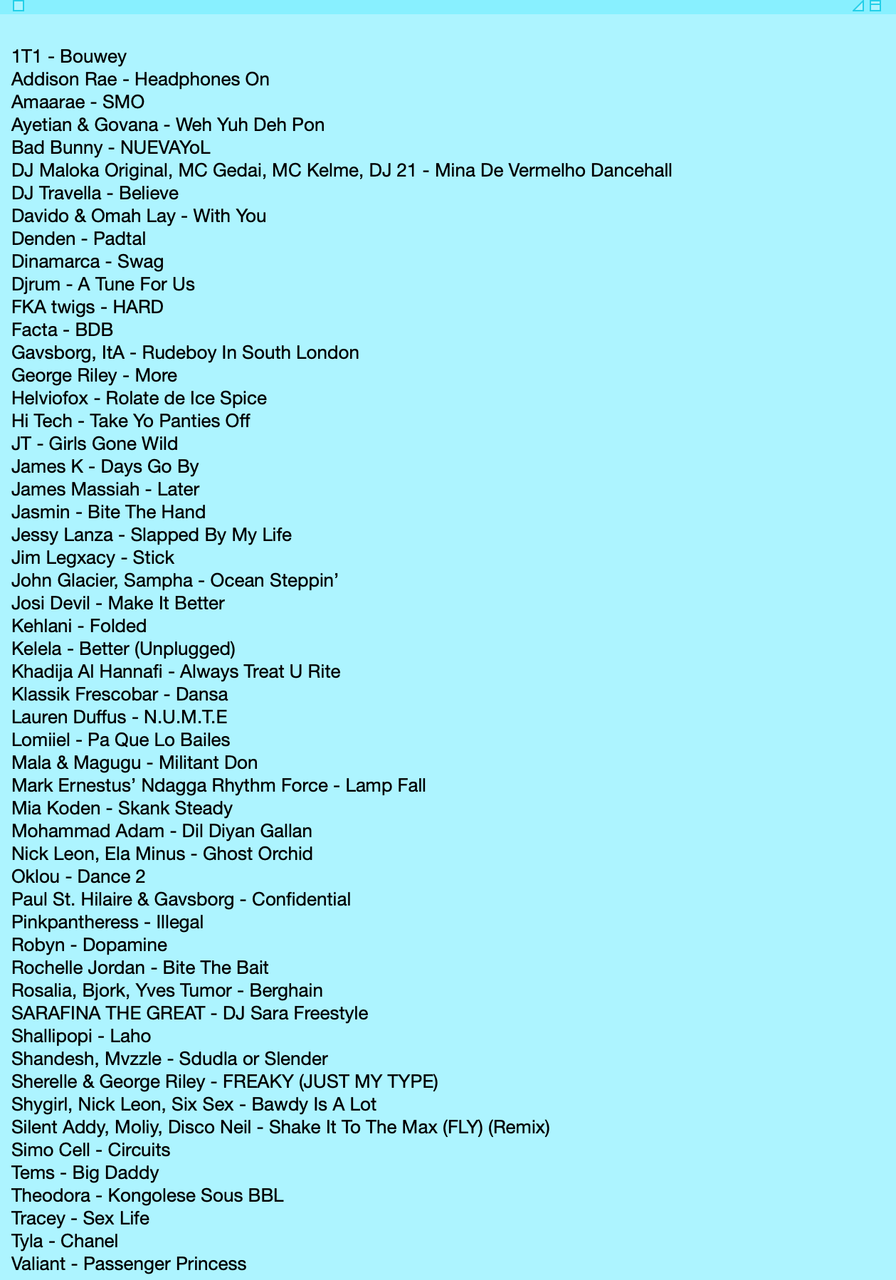 Despite, or perhaps as a result of, the UK being in the bin politically, it was a canon year for UK music. In the post-Dua Lipa landscape, many of us have been watching and wondering when - and whether - the next star will emerge from the country. Is it still ripe to produce another Adele or Ed Sheeran-level star? In 2025, Olivia Dean came through as a new light and Lily Allen dominated the convo with her impressive concept album. Pinkpantheress, FKA twigs, Jim Legxacy, Dave and Blood Orange had big moments too, but a gravitational centre was the “new underground”. This new movement is already seeing new stars emerge - like EsDeeKid, Fakemink, YT and Lancey Foux - as well as a never-ending faucet of inspired artists working within a new sound and scene. I’m excited to see how it develops.